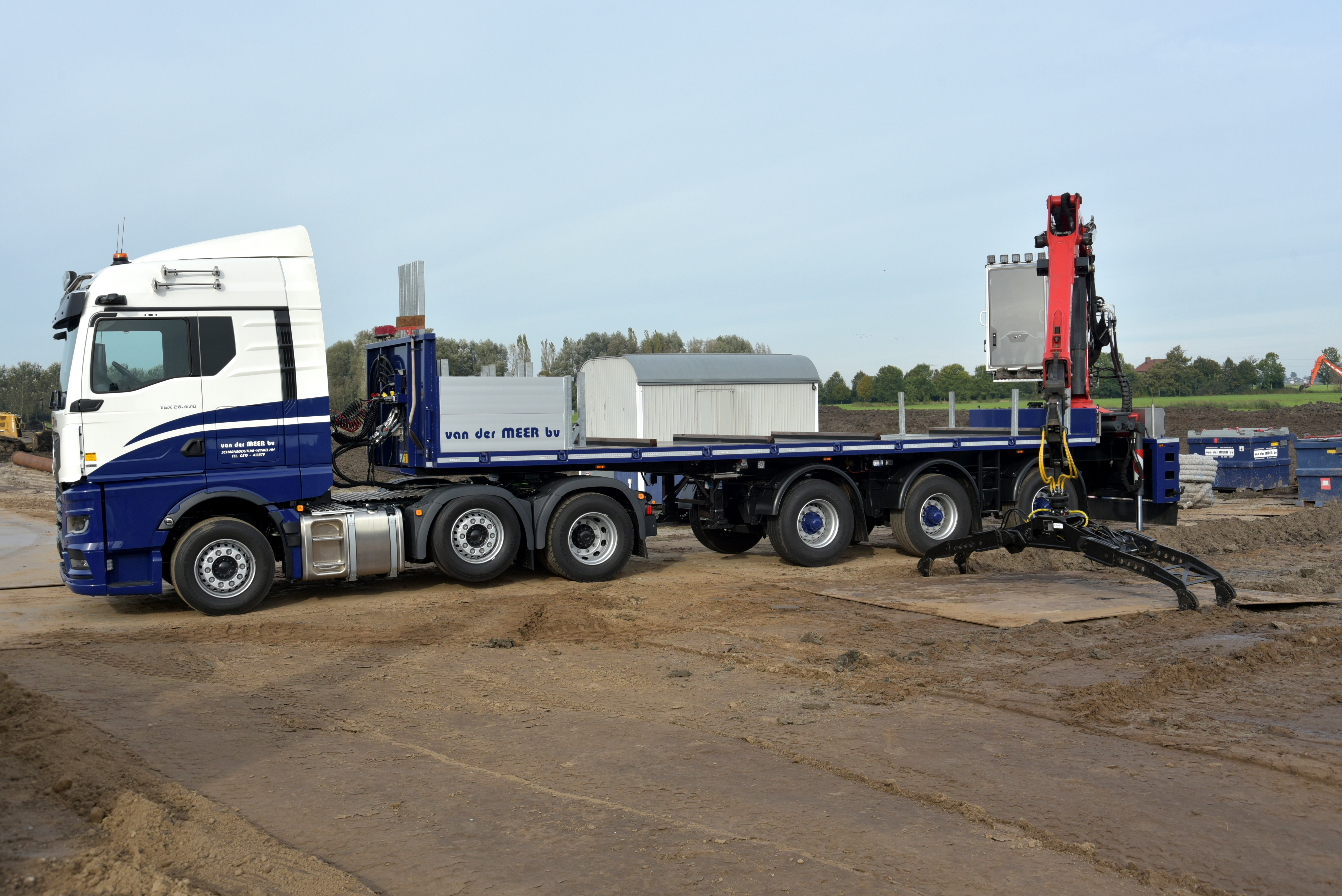 Onlangs hebben wij onze nieuwe MAN TGX 26.470 6x2 trekker met Draco platentrailer in gebruik genomen! De truck kan vanaf de kraan op afstand bestuurd worden. Daardoor kan de chauffeur op de kraan blijven zitten, terwijl de truck langzaam voor- of achteruit rijdt tijdens het leggen van een platenbaan. Efficiënt en veilig!